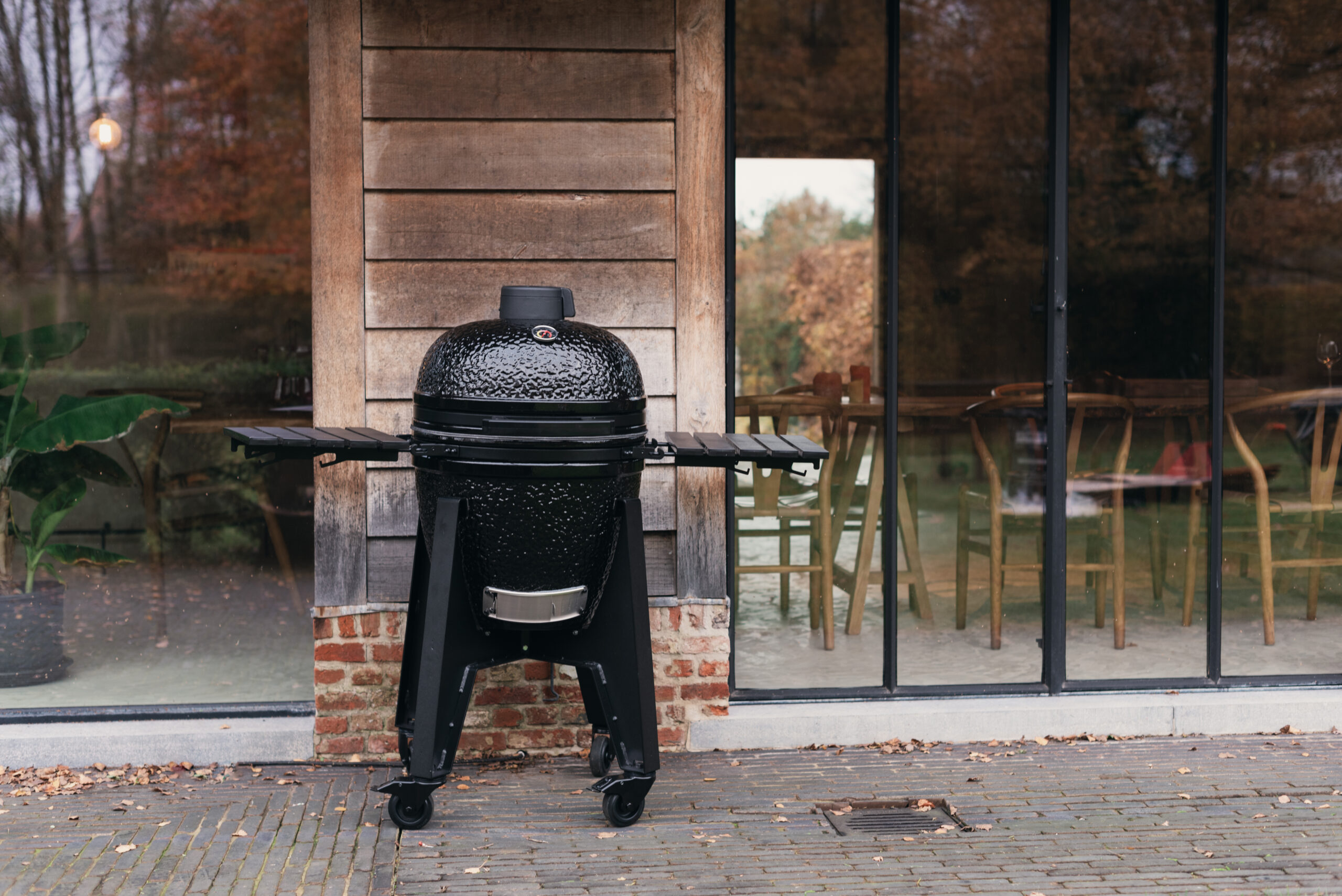 - Roues extra larges, ce qui permet de déplacer facilement le Kamado, même sur un sol irrégulier